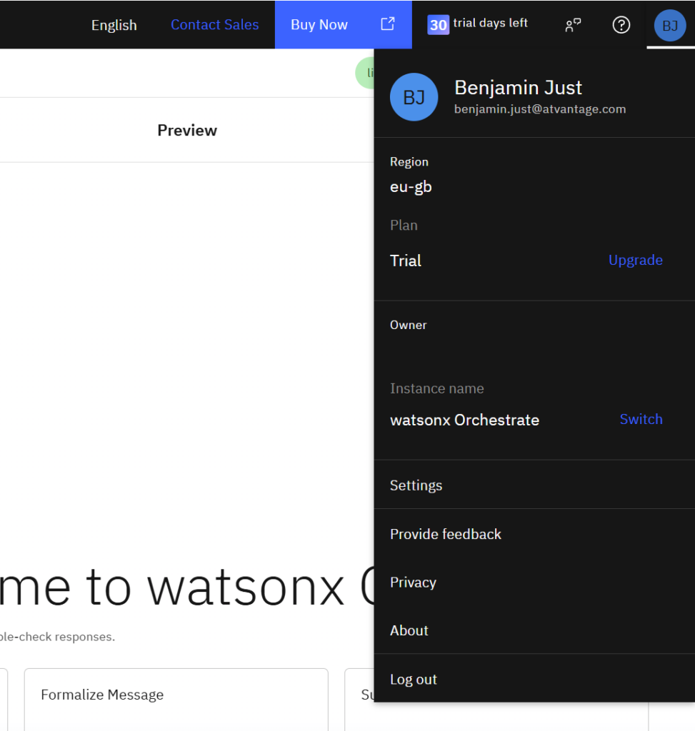 echo -e "1. Log in to your watsonx Orchestrate instance"